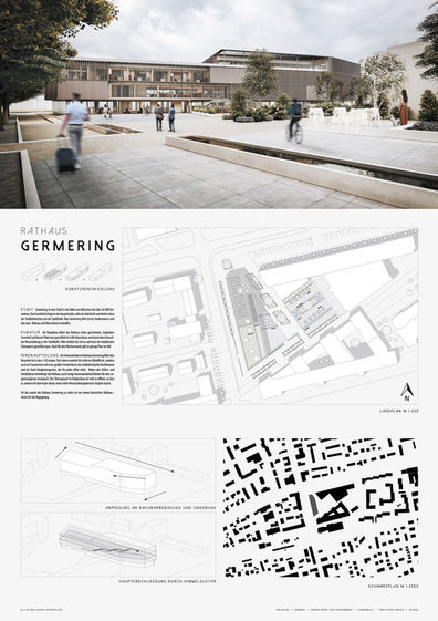 Zum anderen bezieht sich dies auf die inhaltliche Ebene, als konkrete und handfeste Aufgabe ist nämlich ein Rathaus für eine kleinere Stadtgemeinde zu entwerfen. Das Rathaus repräsentiert mit seinen Büroräumlichkeiten die Stadt gegenüber den Bürgern nach außen und stellt damit eine wichtige Rolle im öffentlichen Leben dar.